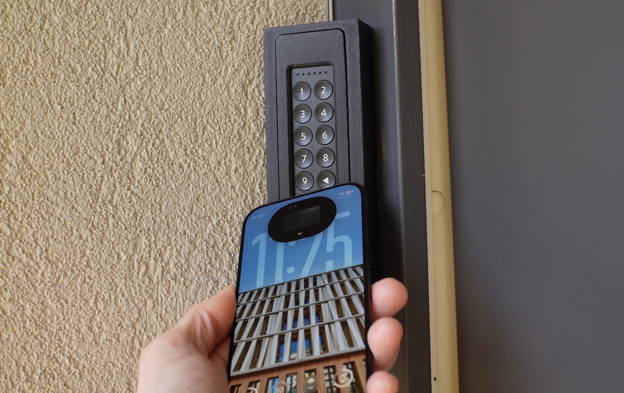 Ich habe das Keypad 2 NFC in ein 3D Gedrucktes Gehäuse gepackt. Weniger ob der Witterungseinflüsse als um es komfortabler angewinkelt zu platzieren. Postivier Nebeneffekt: Ohne Werkzeug ist das Keypad so nicht mehr zu entwenden. Natürlich gibt es auch verschiedene druckbare Wetterschutz-Gehäuse.