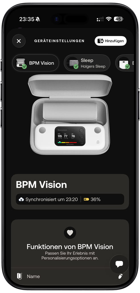 Beim BPM Vision ist die Withings App zwar immer noch stark zu empfehlen, im Alltag aber nicht zwingend notwendig. Freunden oder Familienmitgliedern die technisch weniger versiert sind können das Gerät einfach wie jedes andere Blutdruckmessgerät nutzen und direkt den Blutdruck kontrollieren. Über das verbundene Withings Konto werden aber natürlich weiterhin die Daten praktisch gespeichert und können bequem an einen Arzt z.B weitergeleitet werden.