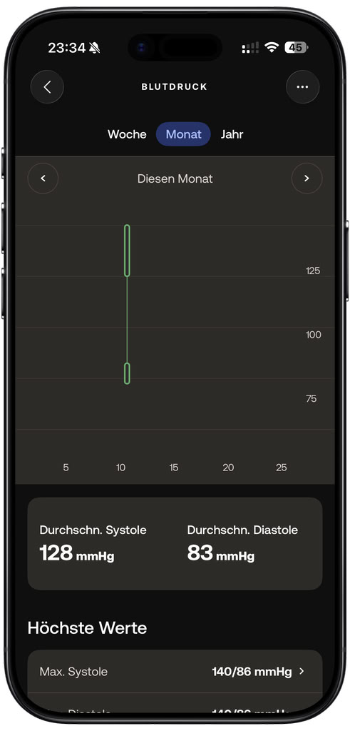 Natürlich ist die Withings App auch vollständig mit Apple Health kompatibel, die Messdaten können also auch dort eingesehen werden.