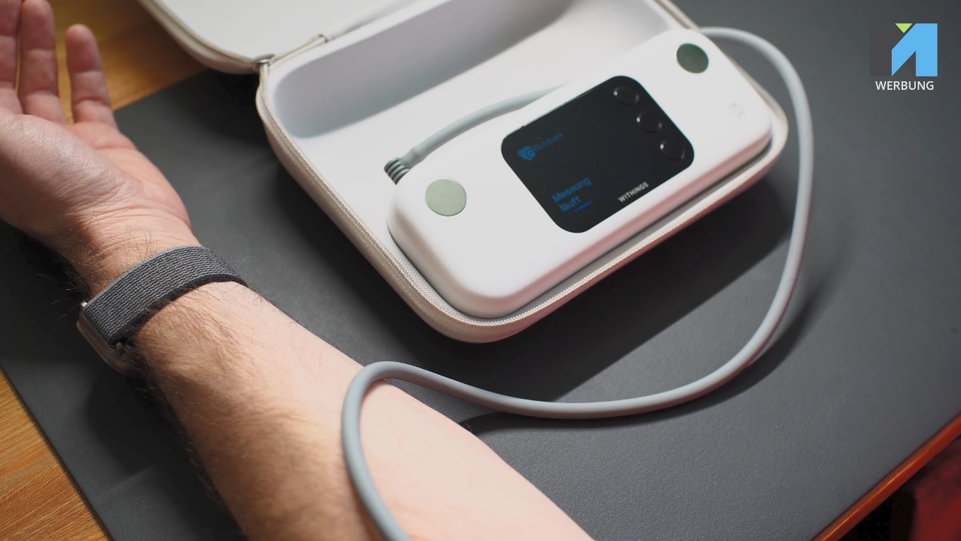 Das Anlegen der Manschette ist relativ einfach, tatsächlich sogar einfacher als bei Geräten, die direkt auch die ganze Elektronik auf die Manschette packen, da die Manschette selbst so wunderbar leicht und flexibel ist.